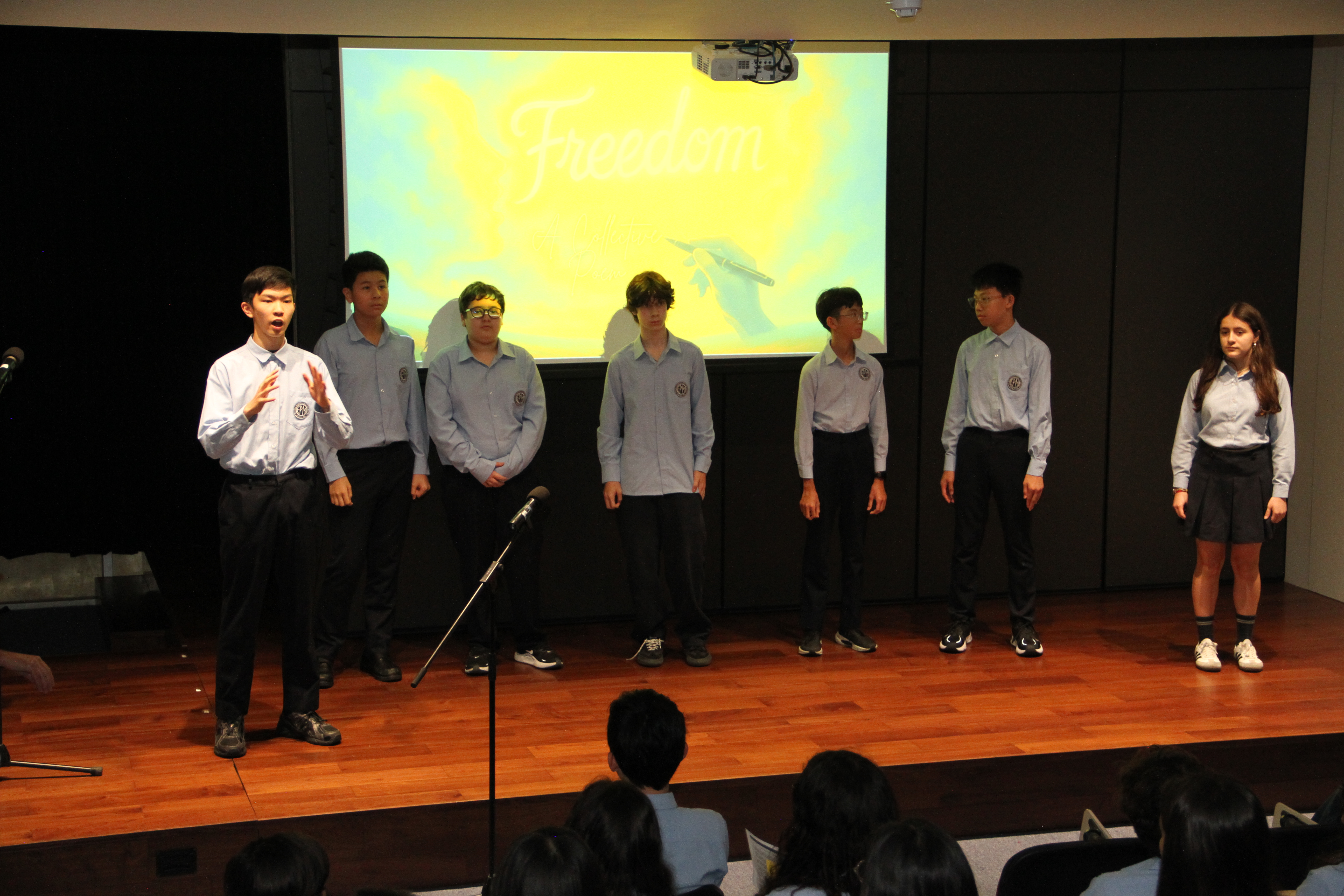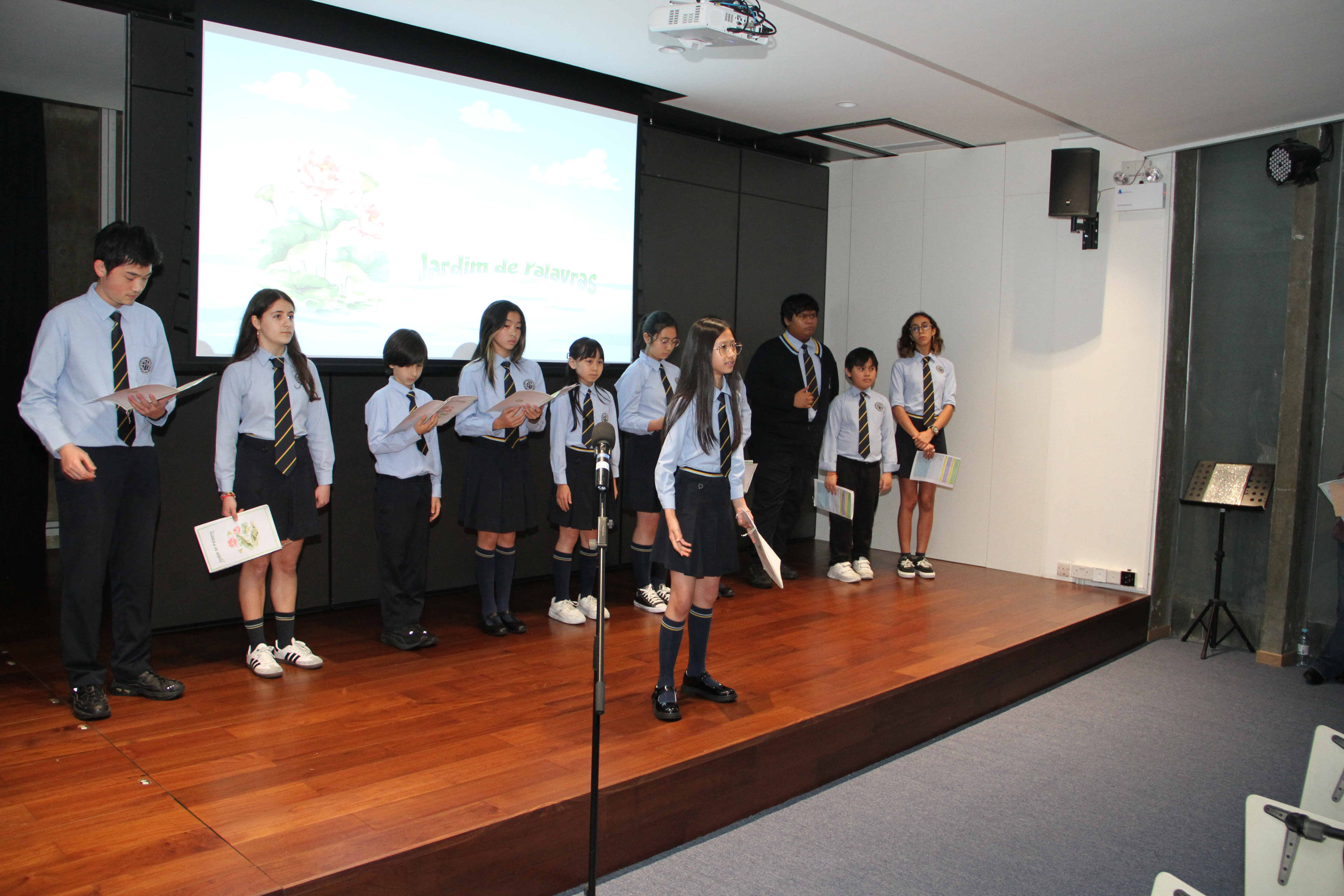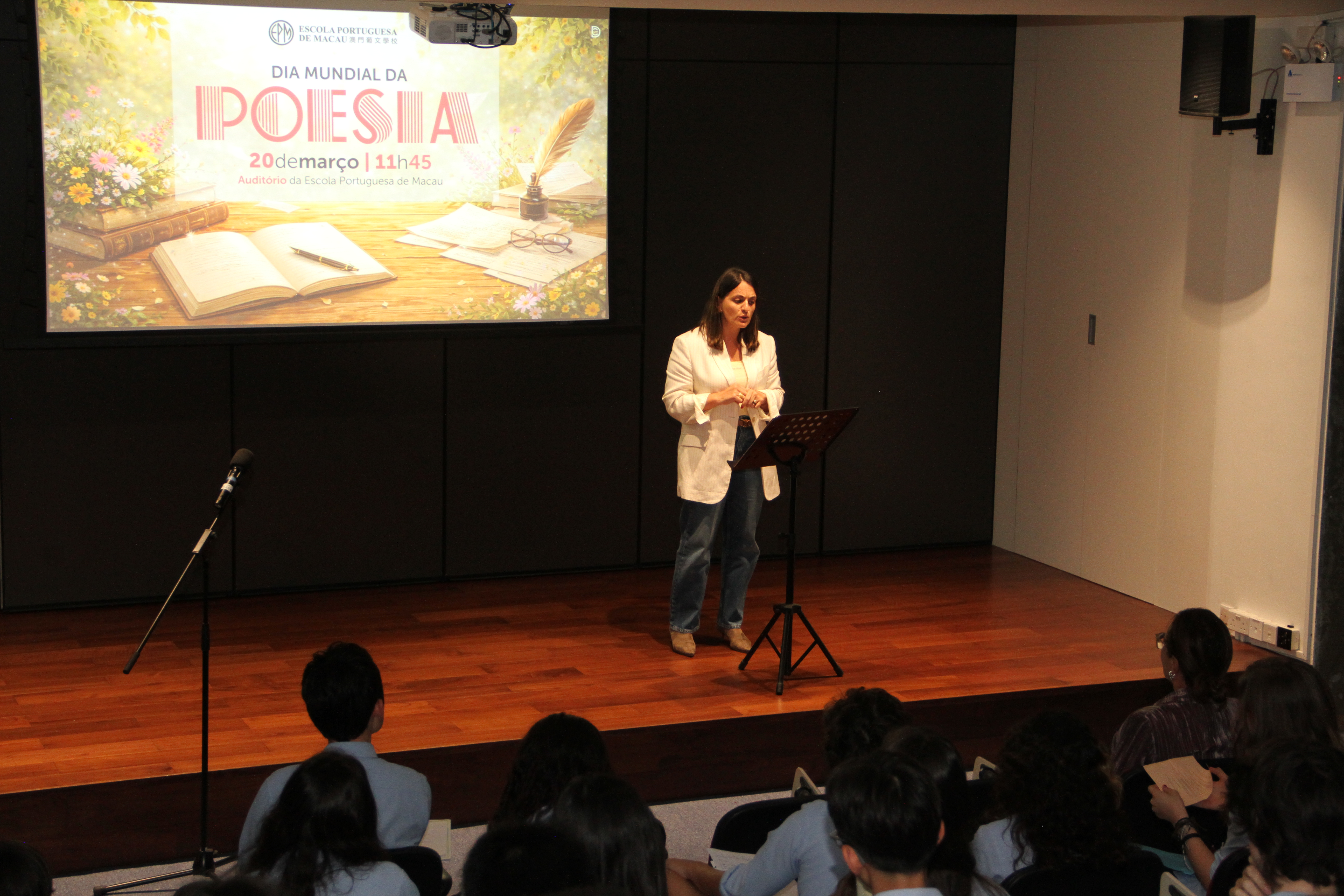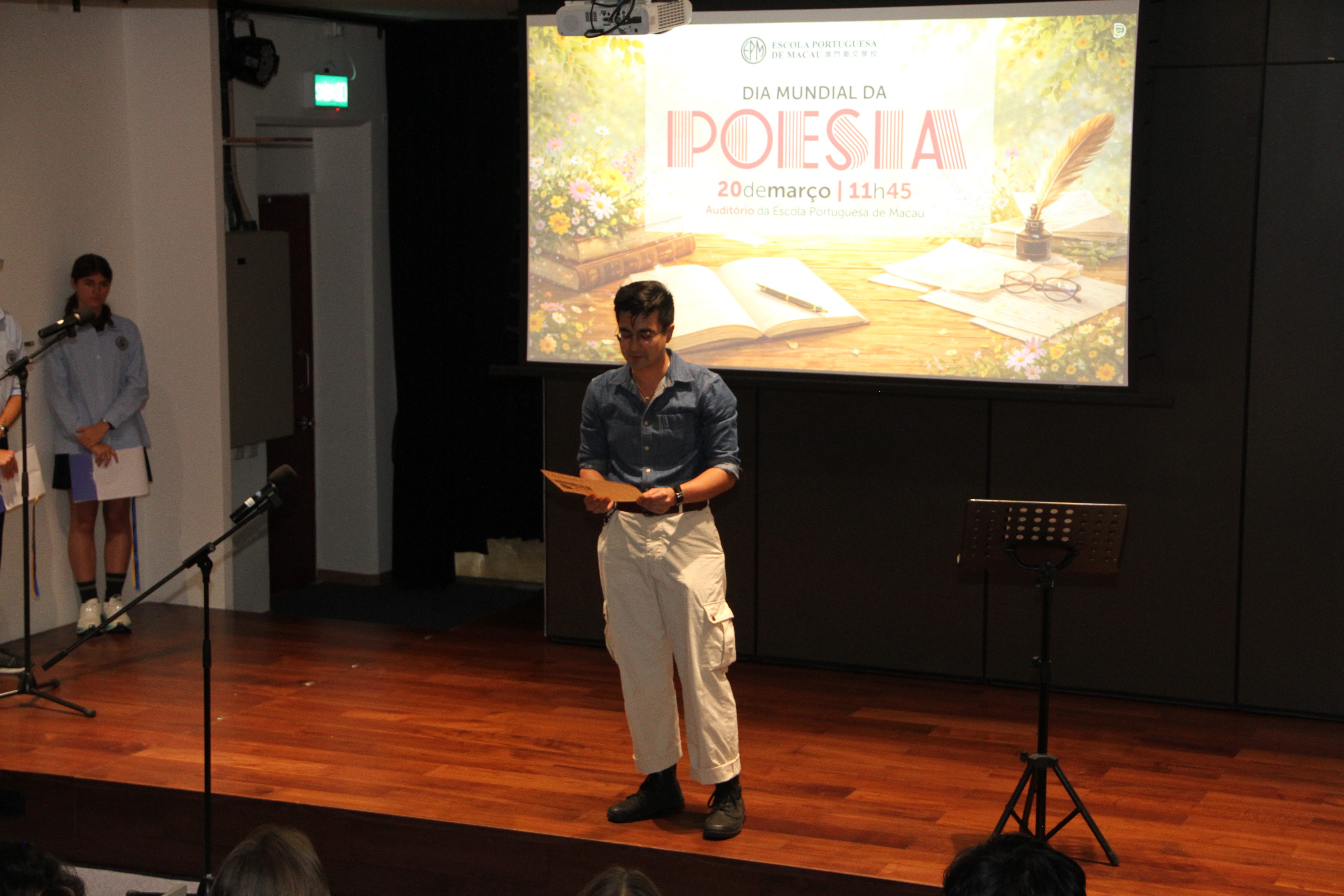 No dia 20 de março, o auditório encheu-se de emoção para assistir à quarta edição da Declamação de Poesia. Alunos e professores, lado a lado, declamaram poemas em várias línguas, revelando que a palavra não conhece fronteiras. Cada interpretação foi um sopro de intensidade, vibrante e emotivo, arrancando aplausos que ecoaram como testemunho da força da poesia. O evento abriu com o Jardim de Palavras, onde os premiados do XXIII Concurso de Declamação de Poesia da EPM, numa verdadeira simbiose poética, declamaram os seus poemas num só! Da arte se fez nova arte, um momento que arrepiou todos os presentes. Este evento fechou com um poema coletivo, em inglês, da autoria dos alunos do 9.º ano, sobre “Freedom”, demonstrando que a poesia nasce em cada um de nós!