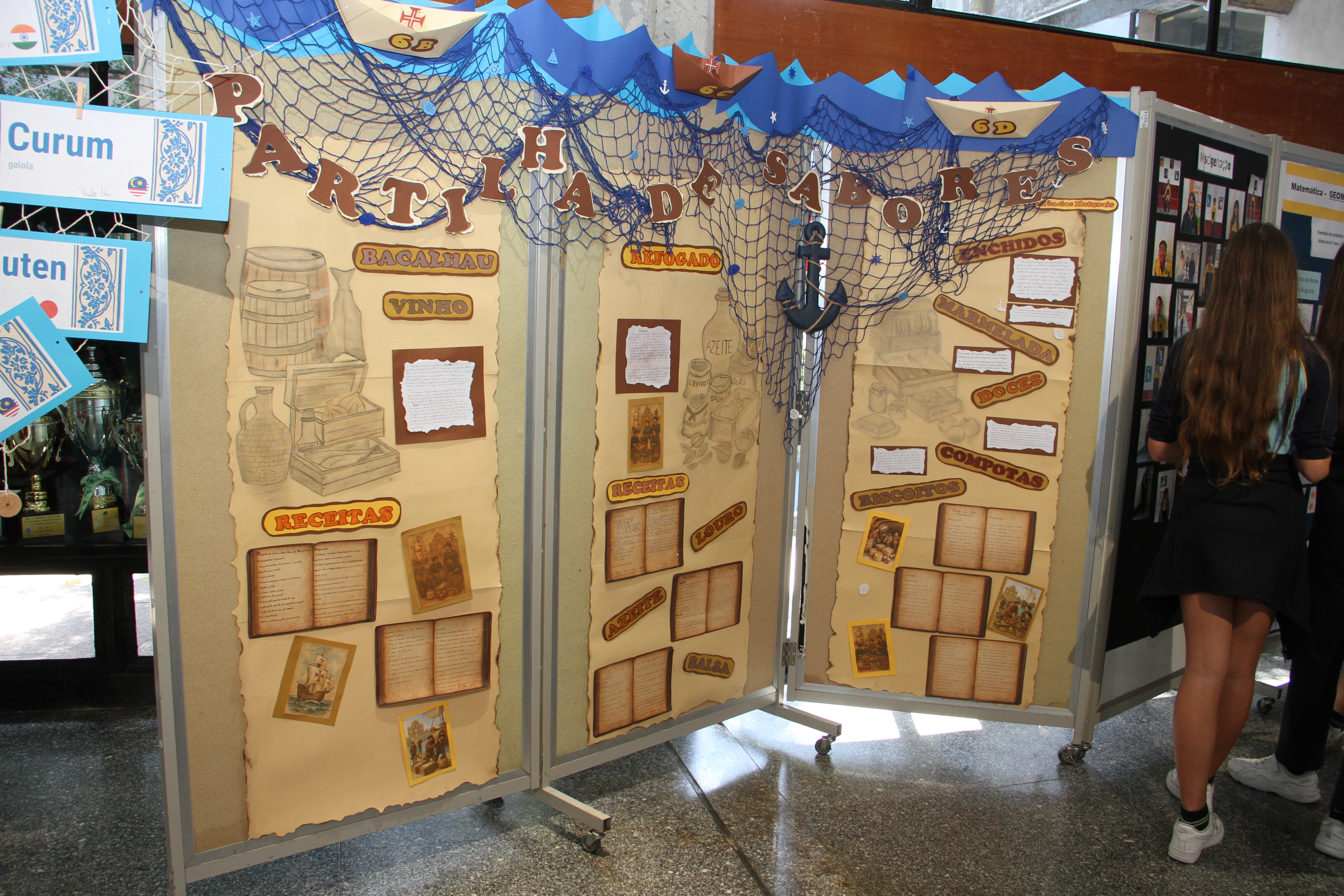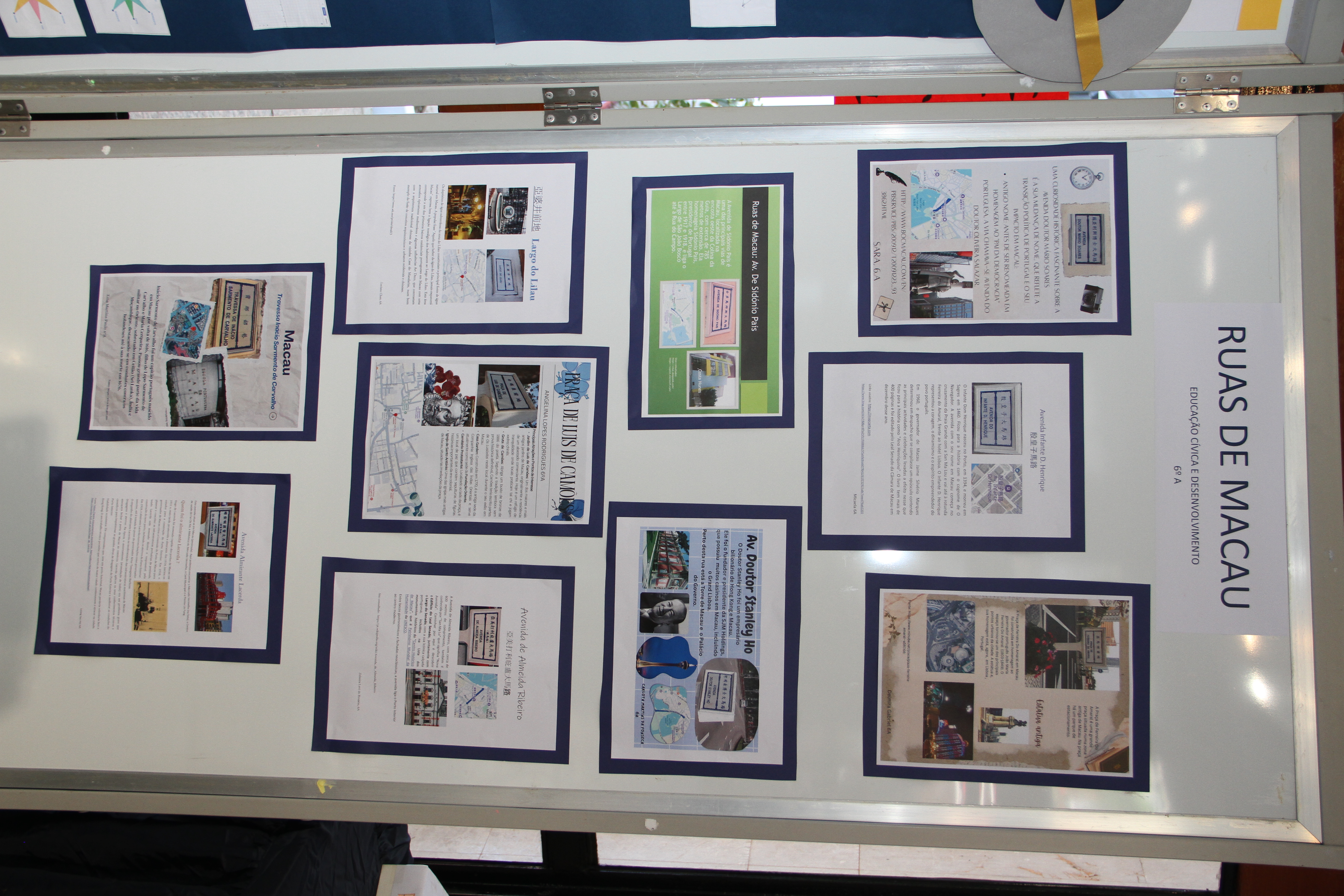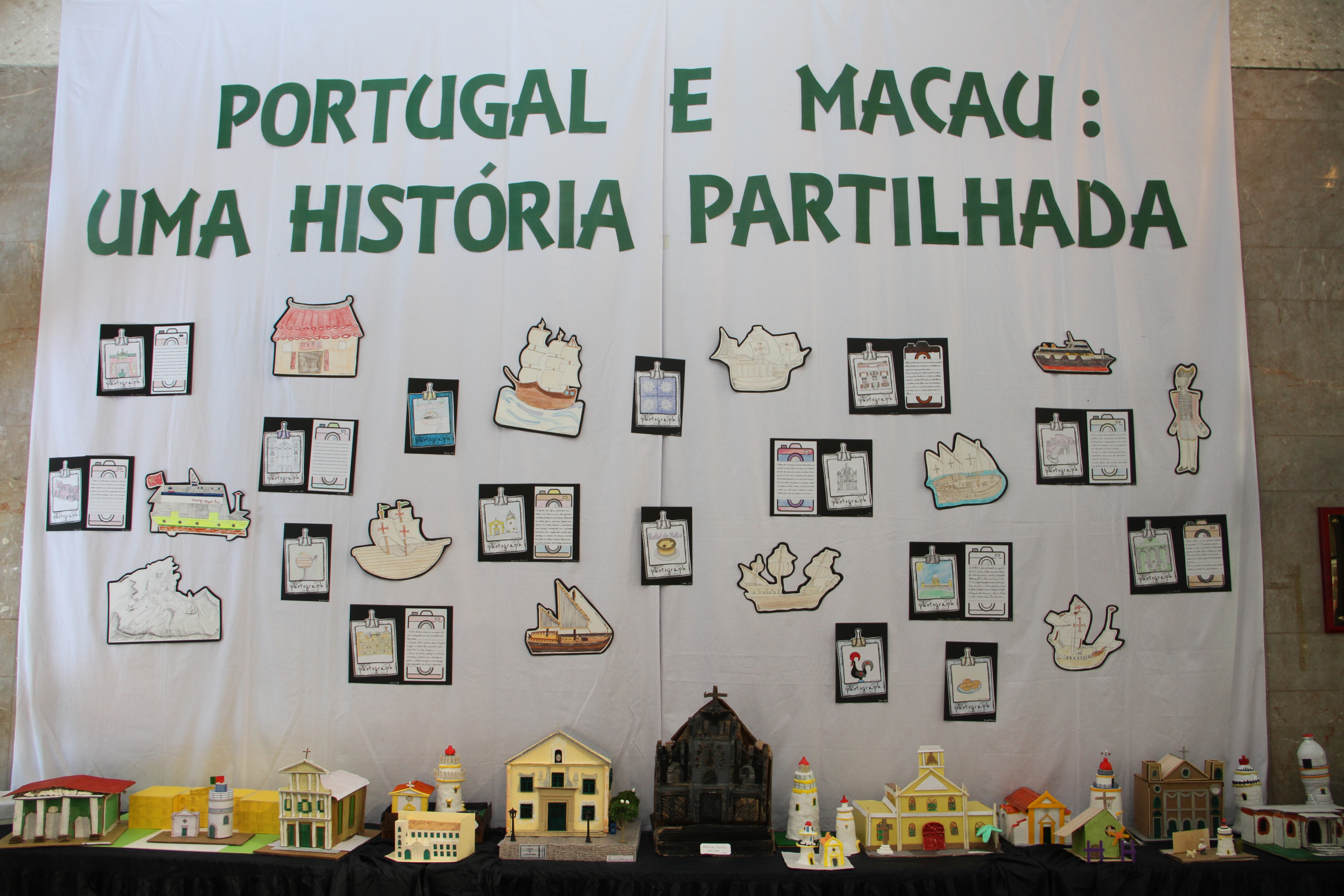 As quatro turmas do 6º ano desenvolveram o projeto interdisciplinar “Portugal e Macau: uma história partilhada”, que teve como ponto de partida os conteúdos lecionados na disciplina HGPM e se estendeu a áreas disciplinares tão diversas como o Português, a Matemática, as Ciências Naturais, a Educação Visual, as TIC e o ECD. Este projeto procurou ajudar os alunos a contextualizar a chegada dos portugueses a Macau no âmbito da expansão marítima portuguesa; a identificar os elementos da herança deixada pelos portugueses no território e na cultura de Macau; a evidenciar e a valorizar a singularidade da cultura macaense, reflexo e resultado de uma história partilhada. Os resultados do trabalho realizado podem ser apreciados na expsição que está patente no átrio interior da EPM até ao dia 24 de fevereiro.