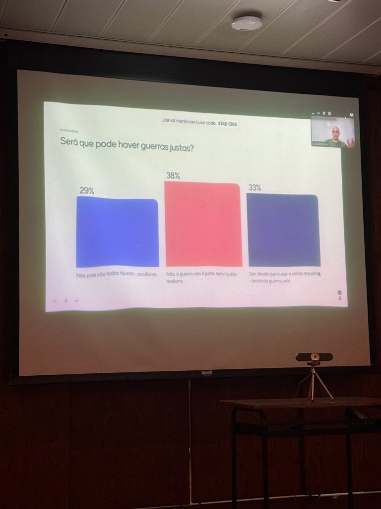 No dia 27 de março, decorreu mais uma palestra “Ousa Pensar”, desta vez subordinada ao tema “O Problema da Justiça de Guerra”, pelo professor Luís Veríssimo, investigador do Centro de Filosofia da Universidade de Lisboa. Professores e alunos, refletiram sobre a moralidade da guerra e sobre várias questões subjacentes a este tema: Haverá alguma justificação para a guerra? A maioria das pessoas pensa que matar é errado. Que razões poderão ser invocadas para considerar que a guerra constitui uma exceção a essa regra? E se, de facto, houver razões para se abrir esse tipo de exceção, a quem se aplicam essas razões? Quem está moralmente autorizado a matar quem, no contexto de uma guerra?